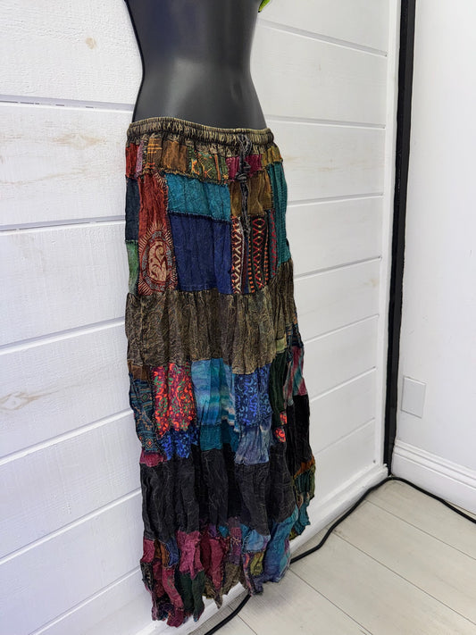 Blue Patchwork Maxi Skirt