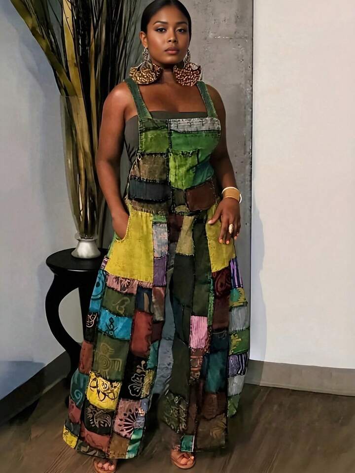Blue Patchwork Overalls